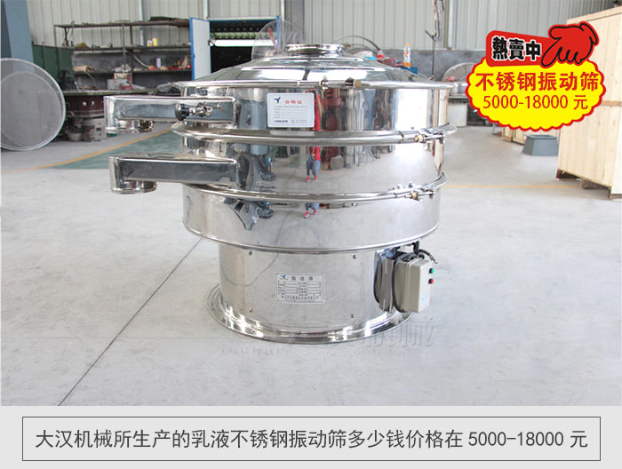 大漢機(jī)械所生產(chǎn)的乳液不銹鋼振動(dòng)篩多少錢價(jià)格在5000到18000元。