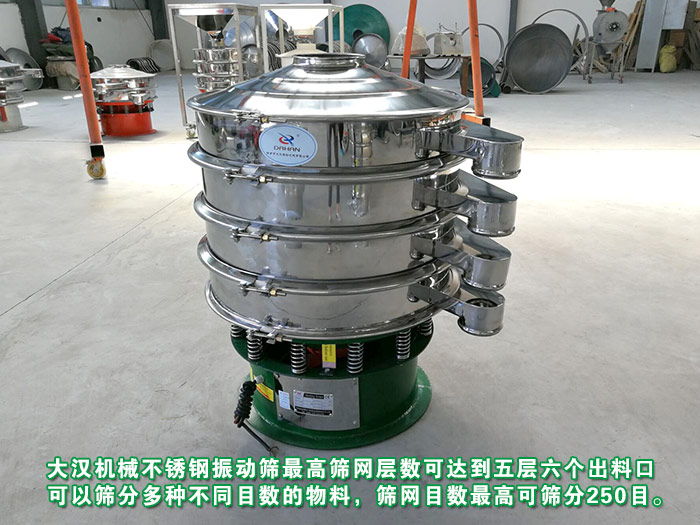 大漢機(jī)械不銹鋼振動(dòng)篩篩網(wǎng)層數(shù)可達(dá)到五層六個(gè)出料口,可以篩分多種不同目數(shù)的物料可達(dá)250目,不同的篩網(wǎng)目數(shù)不同的篩分層數(shù)不同的產(chǎn)量需求所適合的型號(hào)也不盡相同,這樣選擇下來(lái)之間的差價(jià)也就這么提現(xiàn)出來(lái)了。