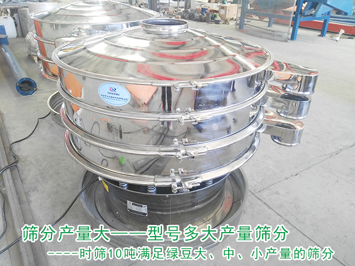 不銹鋼振動篩型號規(guī)格有八種(可根據特殊需求定制型號)滿足了客戶對于不同產量的要求,可根據產量高低選擇不同大小型號的設備,可滿足時篩綠豆10噸左右!