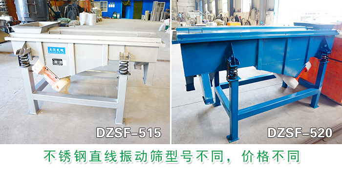 葡萄干不銹鋼直線振動(dòng)篩型號(hào)有:DZSF-515、DZSF-520、DZSF-530、DZSF-1020、DZSF-1030、DZSF-1540等不同型號(hào),根據(jù)不同葡萄干的篩分規(guī)格產(chǎn)量需求,還有篩分設(shè)備材質(zhì)結(jié)構(gòu)、生產(chǎn)場(chǎng)地等條件選擇不同的型號(hào),還可根據(jù)特性需求加長(zhǎng)加寬定制,不同的型號(hào)之間價(jià)格相差在2500元以上。