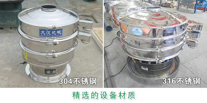 大漢機(jī)械所生產(chǎn)的不銹鋼振動篩精選304與316、316L三種材質(zhì),此外還保證其他原材料都是擇優(yōu)采購進(jìn)行質(zhì)量檢測合格之后才加工使用,生產(chǎn)所需的所有材料配件都已通過ISO9001國際質(zhì)量體系認(rèn)證和歐盟CE認(rèn)證!大漢機(jī)械以優(yōu)質(zhì)的設(shè)備質(zhì)量贏得了眾多用戶的支持與信任。