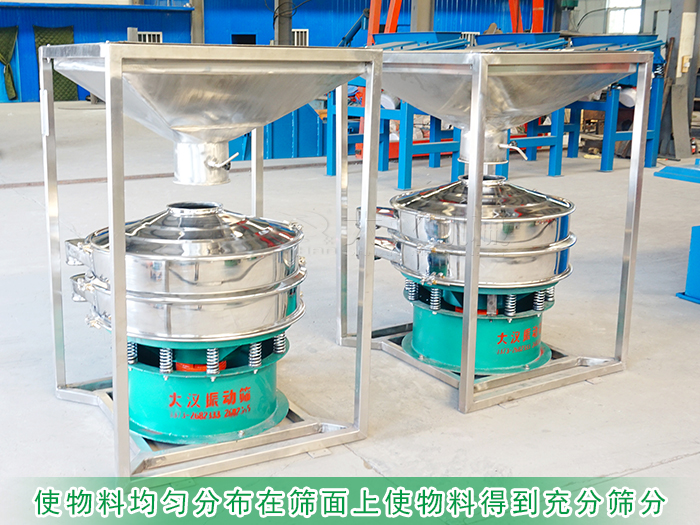 可在不銹鋼振動篩進料口處安裝閥門控制進料速度,或者安裝漏斗型的進料器,使物料均勻分布在篩面上使物料得到充分篩分,實現(xiàn)提高產(chǎn)量的需求。