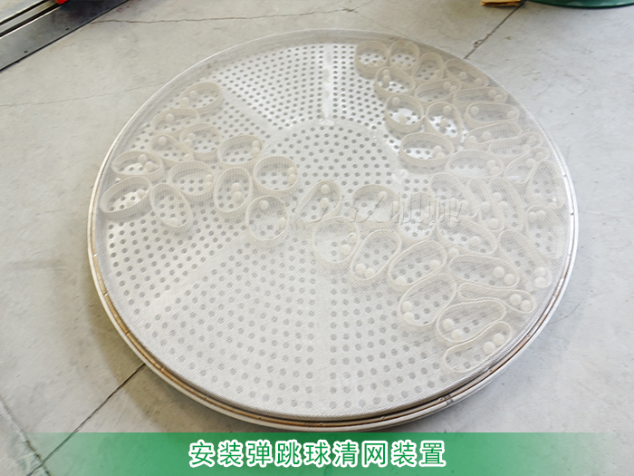 可在不銹鋼振動篩篩框與篩網(wǎng)之間安裝自動清網(wǎng)裝置,它是通過其中的彈跳球經(jīng)過不斷的進行上下往復(fù)跳動撞擊篩網(wǎng),使粘、卡在篩孔之間的水泥被撞擊彈起、落下實現(xiàn)有效清網(wǎng)的作用。可以降低篩面堵孔的機率提高篩分物料的透篩率,提升篩分產(chǎn)量。