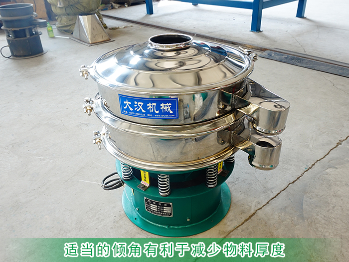 不銹鋼振動篩在設(shè)計傾角時通常情況下為45°,在實際使用過程中如果物料中雜質(zhì)少只需粗篩一下就行的時候可以適當(dāng)調(diào)節(jié)進料口下部的振動彈簧高度,使進料口高度升高可以加快物料在篩面的運動從而加快過網(wǎng)。適當(dāng)?shù)膬A角有利于減少物料厚度,實現(xiàn)薄料層篩分,提高篩分產(chǎn)量。