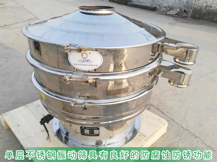 單層不銹鋼振動(dòng)篩采用304不銹鋼材質(zhì)精制而成,具有良好的防腐蝕防銹功能,也可耐高溫,內(nèi)外拋光打磨處理,內(nèi)部無(wú)焊接點(diǎn),表面平整無(wú)凹陷或高低起伏的波浪面,無(wú)扭曲變形的現(xiàn)象,整機(jī)拆卸方便減少篩分除雜后清洗消毒的難度方便清理。