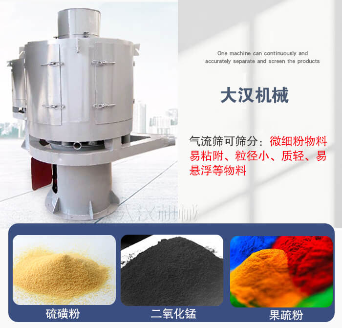 立式氣流篩適合80-530目有網(wǎng)各種粉狀物料篩選分級,適用各種振動篩難進(jìn)行高細(xì)度篩分作業(yè)。