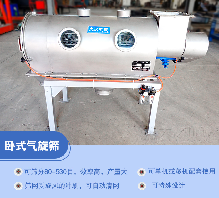 4、臥式氣旋篩可與旋風(fēng)除塵器配套使用,可特殊設(shè)計,滿足特別需求。