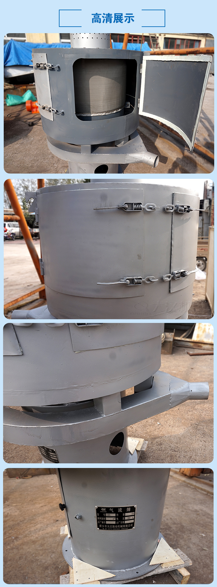 3、具備良好的密封性能,使物料在篩分過程中不會有揚(yáng)塵現(xiàn)象,性好;